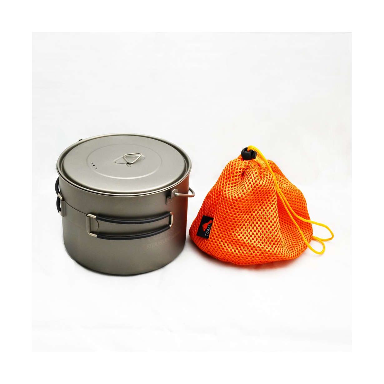 Ultralehký titanový hrnec s pokličkou objemu 1600 ml se závěsným madlem, které ocení především ti, co častěji vaří na ohni. Titan tomuto hrnci dodává minimální hmotnost, pevnost a korozivzdornost. Na vnitřní straně má měřící rysky. Součástí balení je přepravní vak. Rukojeť není potažená silikonovou vrstvou, jako je na fotografiích.