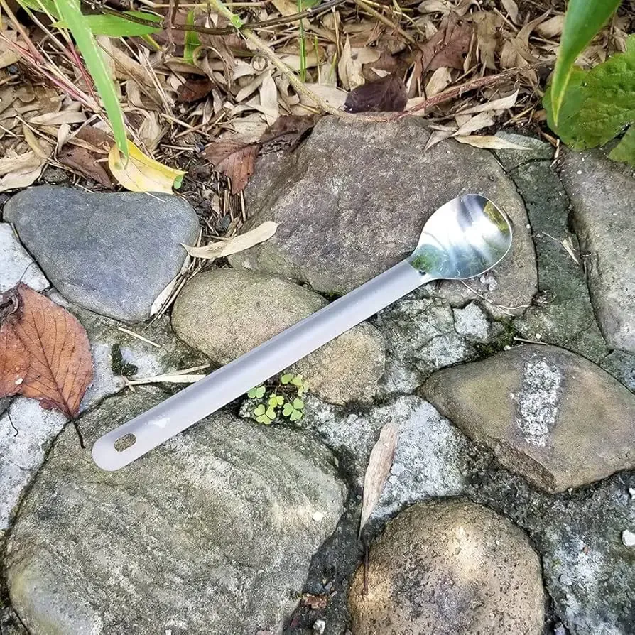 Dlouhá titanová lžíce s leštěnou naběračkou a matnou rukojetí pro pohodlný úchop. Dlouhá lžíce je perfektní na konzumaci jídla přímo z pytlíků dehydrované stravy či hlubokých hrnců. Její délka je 21,7 cm.