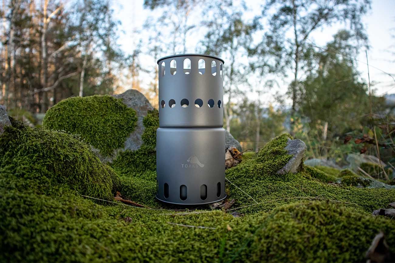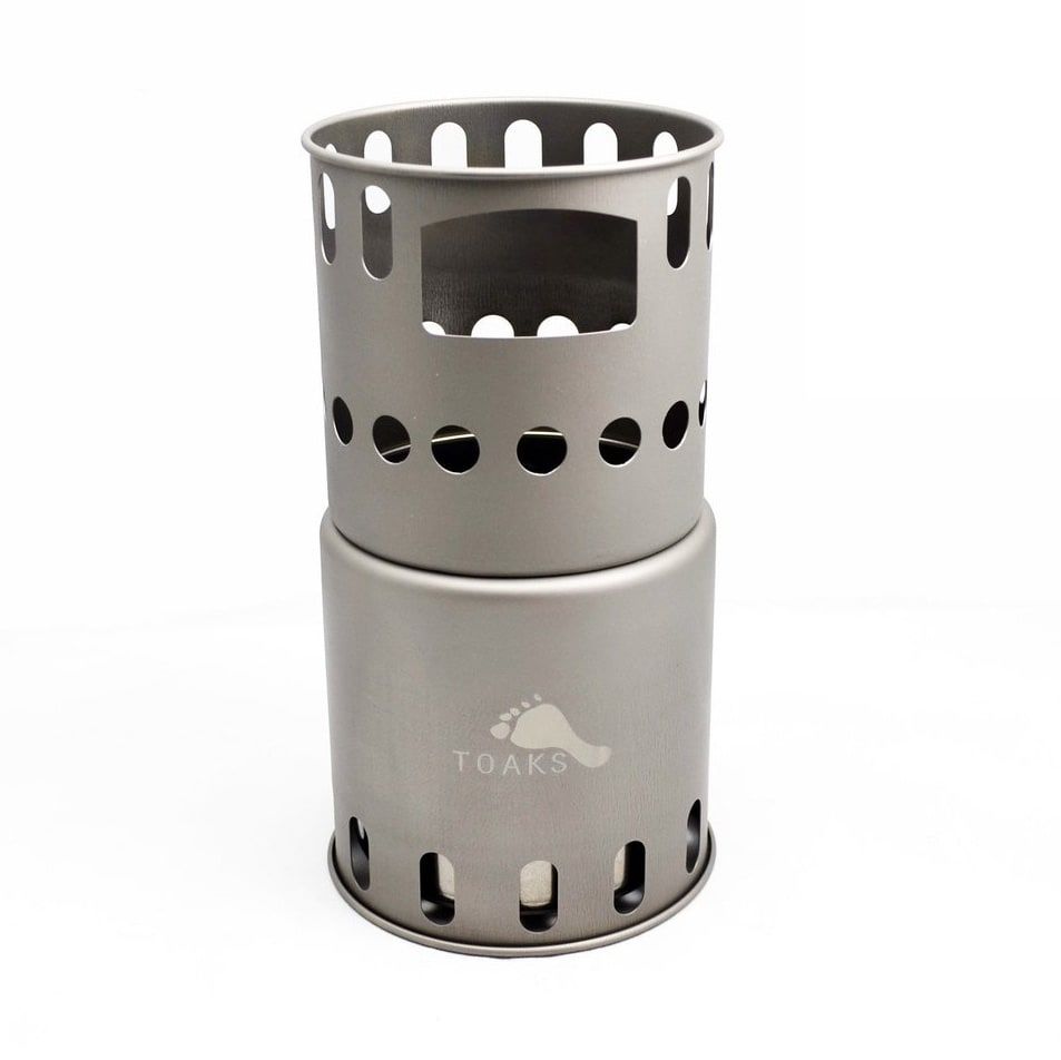 Velký dřívkáč Toaks z titanu s celkovou hmotností 225 gramů. Vařič se skládá ze tří částí, které po složení vytvoří malý komín. Díky vychytané konstrukci má palivo po celou dobu dostatečný přísun kyslíku. S dřívkáčem si jednoduše uděláš dobře kontrolovatelný oheň bez potřeby ohniště, na kterém ohřeješ vodu nebo si opečeš buřty.