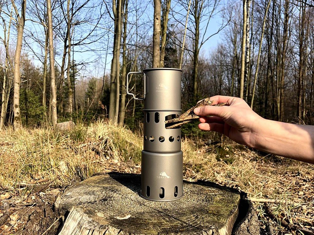 Lehoučký dřívkáč Toaks z titanu s celkovou hmotností 151 gramů. Vařič se skládá ze tří částí, které po složení vytvoří malý komín. Díky vychytané konstrukci má palivo po celou dobu dostatečný přísun kyslíku. S dřívkáčem si jednoduše uděláš dobře kontrolovatelný oheň bez potřeby ohniště, na kterém ohřeješ vodu nebo si opečeš buřty.