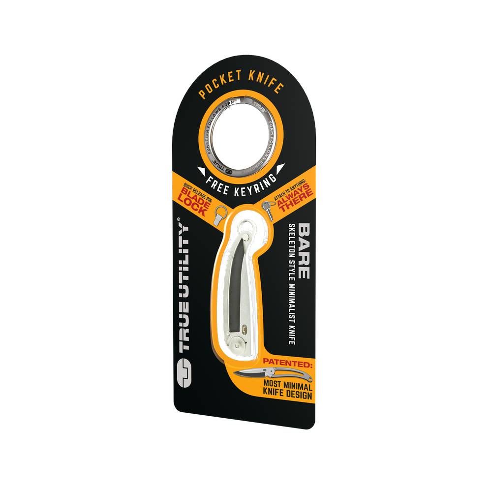 Originální britský nůž TRUE Bare je určen těm, kteří chtějí nosit po kapsách skutečně jen minimum. Díky minimálním rozměrům nože po složení 55 mm a 20 gramům, může být s tebou opravdu všude. Pomocí pinu můžeš nůž zajistit a pověsit téměř na cokoliv.