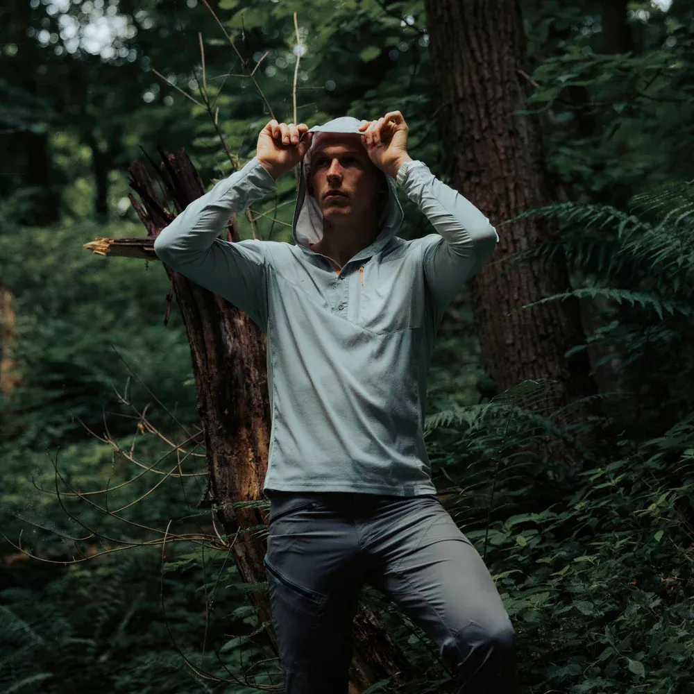 Pohodlná pánská letní košile s dlouhým rukávem, kapucí a ochranou proti UV záření.