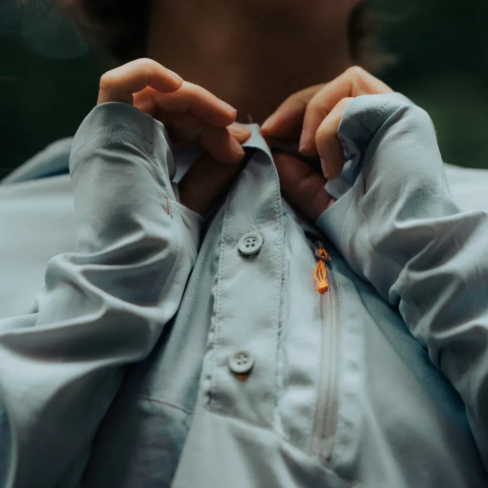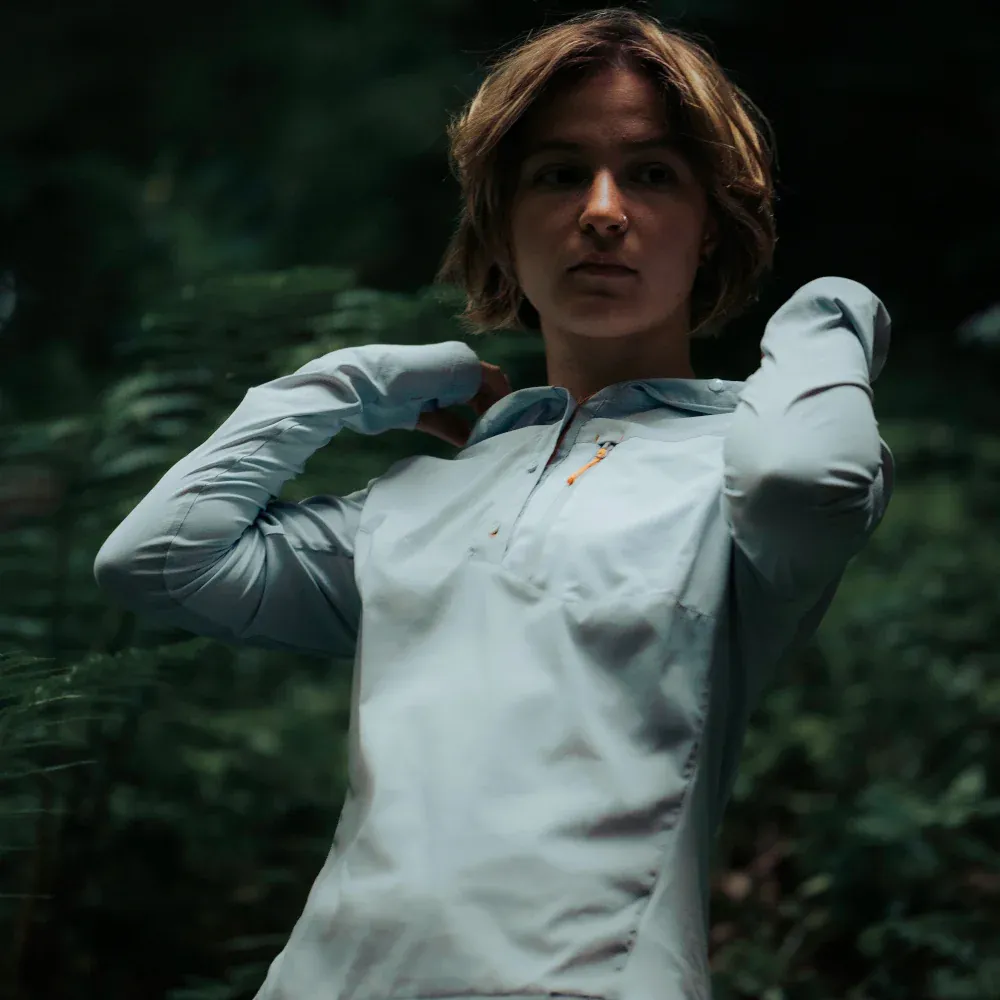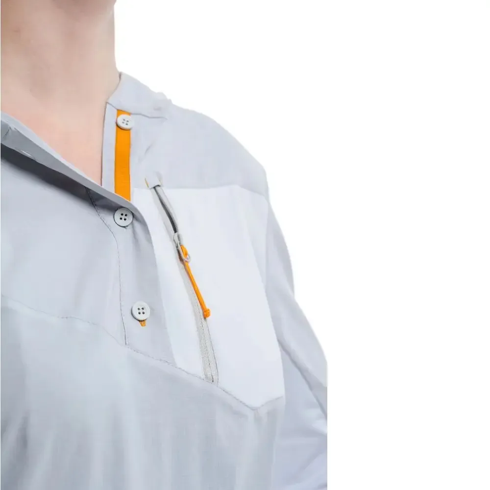 Košile je navržena s ohledem na nošení batohu – bez zbytečných prvků v oblasti beder, s rychleschnoucí strukturou a vysokou odolností vůči mechanickému opotřebení a slunečnímu záření (UPF50+).