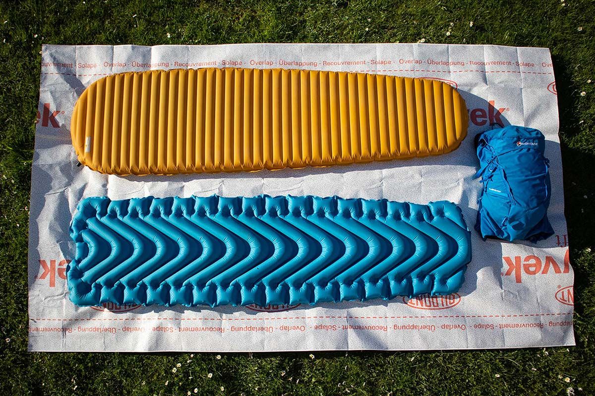 Rozměr 150 x 250 cm je ideální pro dvě osoby. Po obou stranách karimatky bude mírný přesah a k nohám nebo hlavě se ti ještě vejde batoh. Tyvek je oboustranně funkční, takže je jedno, kterou stranou ho budeš pokládat nahoru. Je paropropustný a vyniká svou odolností a nízkou hmotností. Jeho menší nevýhodou je bílá barva, která bije do očí, a to, že většina nafukovacích karimatek po něm v nerovném terénu klouže, což lze vyřešit protiskluzovou úpravou povrchu.