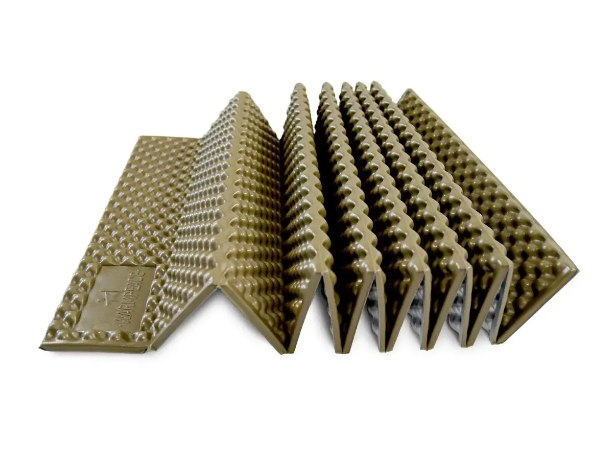 Odolná a skladná pěnová karimatka Cirrus od české značky Warmpeace s praktickou harmonikovou konstrukcí a svrchní reflexní vrstvou, která zvyšuje tepelný komfort.