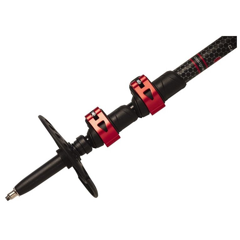 Hole jsou třídílné, přičemž první (horní díl) je konstruován z karbonu, spodní dva díly z hliníku. Na samém konci najdeš ocelové (karbidové) hroty. Hole se mohou pyšnit prodlouženou rukojetí z příjemné EVA pěny. Rukojeť poskytuje pohodlný úchop v rukavicích i bez nich. Samozřejmostí je také nastavitelné poutko z měkkého popruhu.
